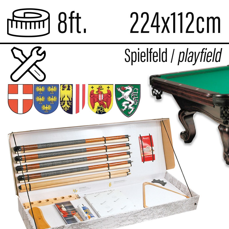 Pool Billardtisch Dragon Carved 8ft Kirsch Spielfläche 224 x 112 cm
