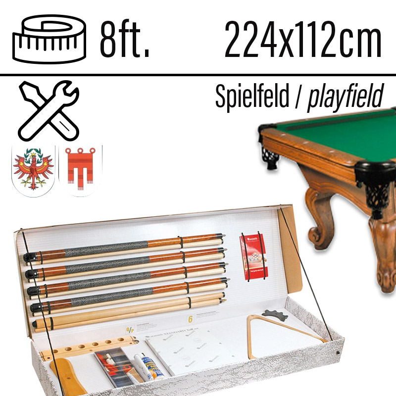 Pool Billardtisch Dragon Carved 8ft Eiche Spielfläche 224 x 112 cm