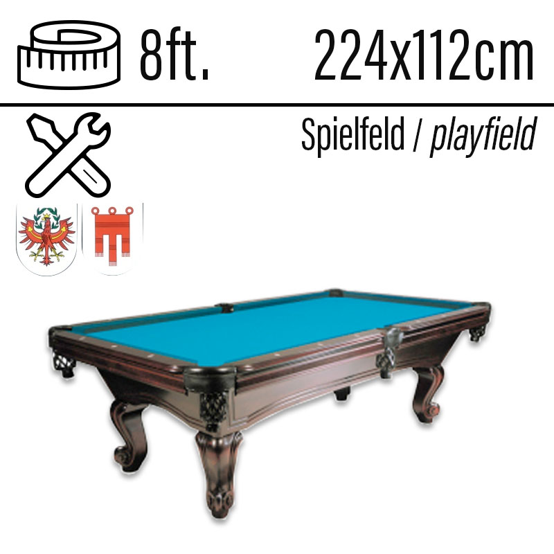 Pool Billiard table Dragon Carved 8ft cherry, playfield 224x112cm