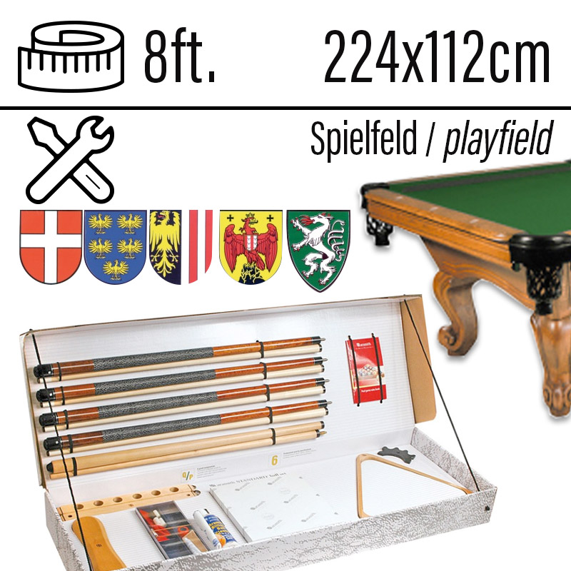 Pool Billiard table Dragon Carved 8ft oak, playfield 224x112cm